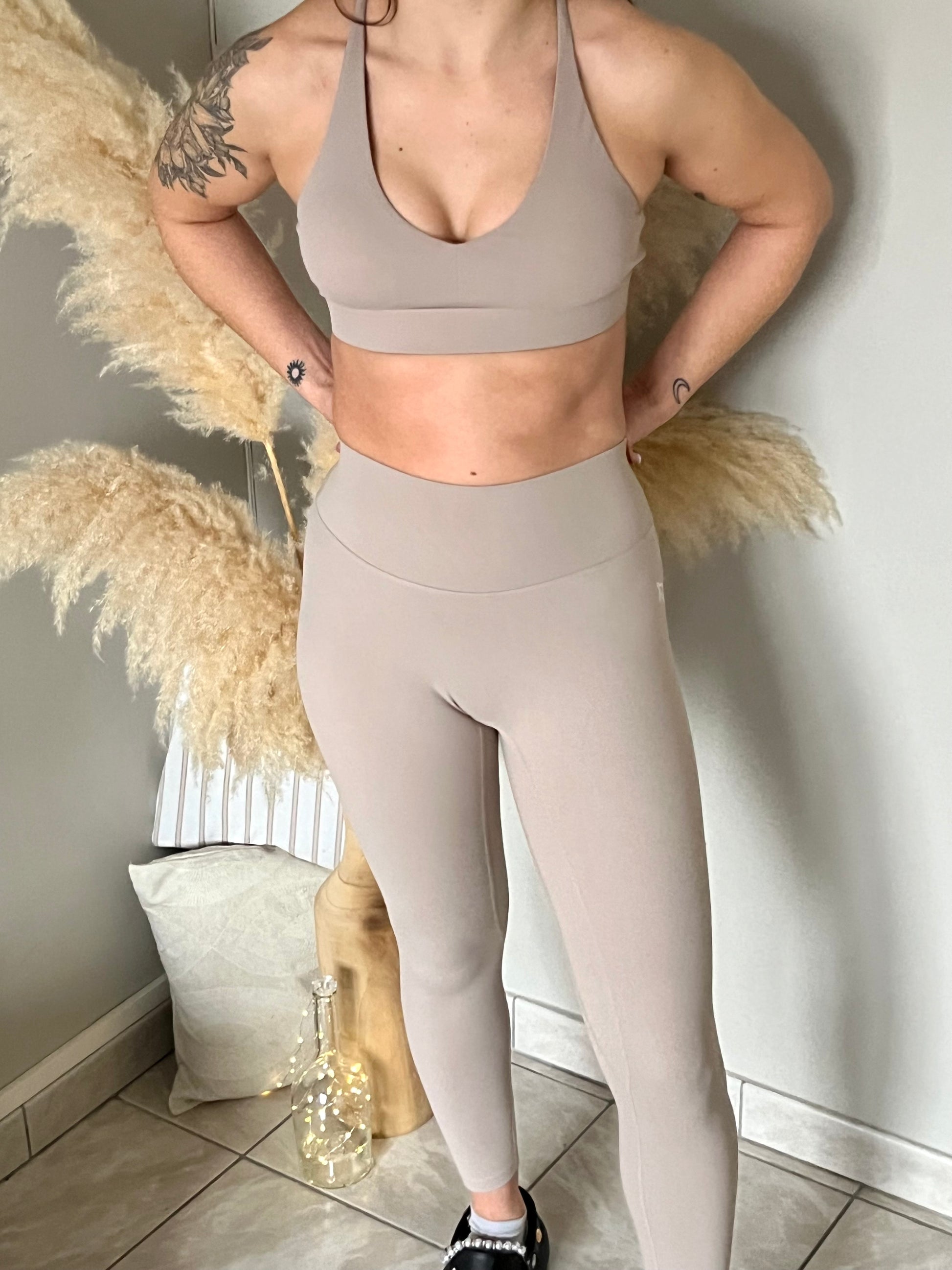 Notre legging « June » de couleur beige est ultra confortable et agréable à porter, il tient en place pendant vos seances de sport et ne bouge pas